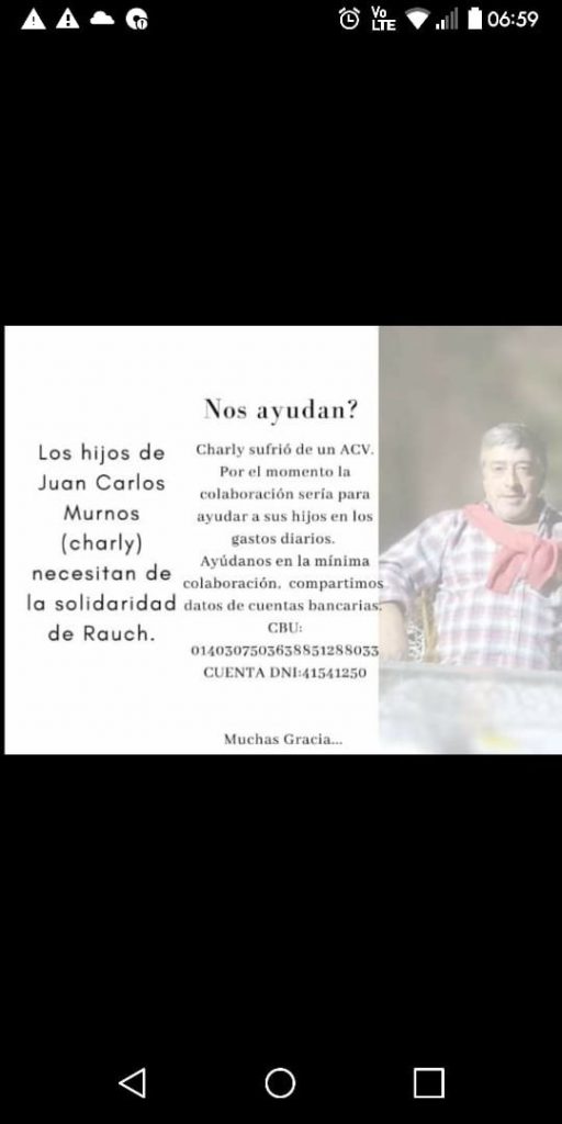 Daniel Burg, compañero de trabajo de Murno destaco la colaboración de sus compañeros y gente de otras áreas del municipio. Exclamo que esta acción pasa por lo afectivo “Fui galpón por galpón, persona por persona, me toco hacerlo a mí, con mucho orgullo y ganas”
