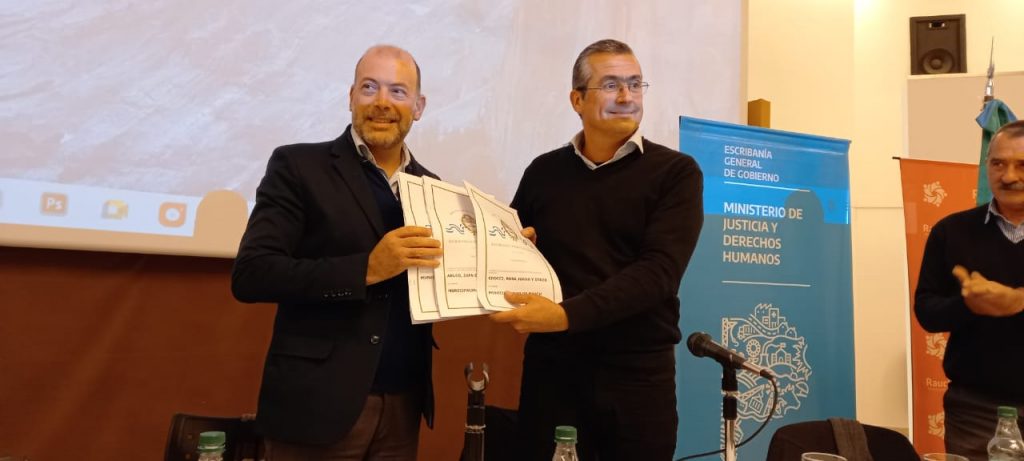 SUESCUN: “TENER EL TITULO DE LA CASA NOS DA MUCHA SEGURIDAD. LA CASA ES EL LUGAR DONDE SE ESTRUCTURA LA CELULA BASICA, QUE ES LA FAMILIA”El Gobierno Municipal llevó a cabo una nueva entrega de Escrituras. Fue en la mañana de hoy, en el Museo Municipal de Artes Plásticas de la Casa de la Cultura. En total fueron 76 las familias de nuestra ciudad que recibieron el título de su vivienda. El acto fue encabezado por el Intendente Municipal Maximiliano Suescun y el Director de Fortalecimiento Institucional de la Escribanía General de Gobierno Sebastián Tangorra. Junto a ellos estuvo presente la Escribana Elisabet García, funcionarios y concejales de ambos bloques.Esta entrega, enmarcada en el programa “Mi Escritura, mi casa” que realiza el Ministerio de Justicia y Derechos Humanos, beneficia a las familias rauchenses. Recibieron su escritura vecinos de los barrios MIT, FONAVI, 15 de Septiembre, PROCASA, PyM “A” y PyM “B”, Barrio Alberdi, entre otros. Además, el Intendente recibió las escrituras correspondientes a las quinta 28, donde se encuentran los Barrios de Policía, Construcción en Seco y el programa “Mi terreno en mí ciudad”; y 58, correspondiente al Plan Federal de 60 Viviendas.El Intendente Suescun, ante la emoción de los presentes, dijo que “es un día muy importante para todos ustedes. Tener el título de la casa nos da mucha seguridad, la casa es el lugar donde se estructura la célula básica, que es la familia”.Además, destacó que “los beneficiarios de las escrituras son los vecinos de Rauch”-“Quiero agradecer al equipo municipal, trabajan muy bien. Se esfuerzan cada día para poder lograr el bienestar de los vecinos” expresó.Más adelante, indicó que “hay dos muy buenas noticias para los vecinos de Rauch y se los quiero agradecer. La primera es la escritura de la quinta 28, donde se encuentran los barrios de Policía, Construcción en seco y los 66 beneficiarios de “Mí terreno en mí ciudad”. La segunda es la escritura a nombre del Municipio del Plan Federal de 60 viviendas. Son pasos que beneficiarán a los vecinos”.El funcionario bonaerense resaltó el trabajo de los equipos de gobierno, para poder llevar adelante esta tarea. “Los verdaderos protagonistas son las familias que reciben la escritura, que han trabajado y esperado tanto este momento” dijo, agregando que “la espera ha sido larga, algunos por décadas”.Con esta entrega, en los últimos años, en nuestra ciudad se han realizado 10 actos, donde más de 500 vecinos tienen la seguridad legal de la casa propia.(Prensa Municipal)