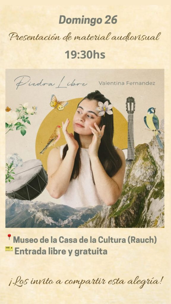 Valentina Fernández, cantante local quien ha recorrido varios escenarios, entre ellos el de Pre Cosquín en 2022, presentará este domingo su primer disco llamado ‘Piedra Libre’ en la Casa de la Cultura a partir de las 19 horas.
