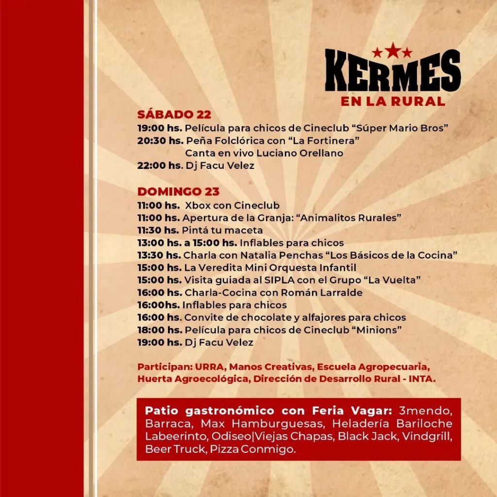 El próximo fin de semana, sábado 22 y domingo 23 de julio, la Sociedad Rural de Rauch junto a la Cámara Comercial y la Feria Vagar organizan una kermes con distintos tipos de actividades para toda la familia