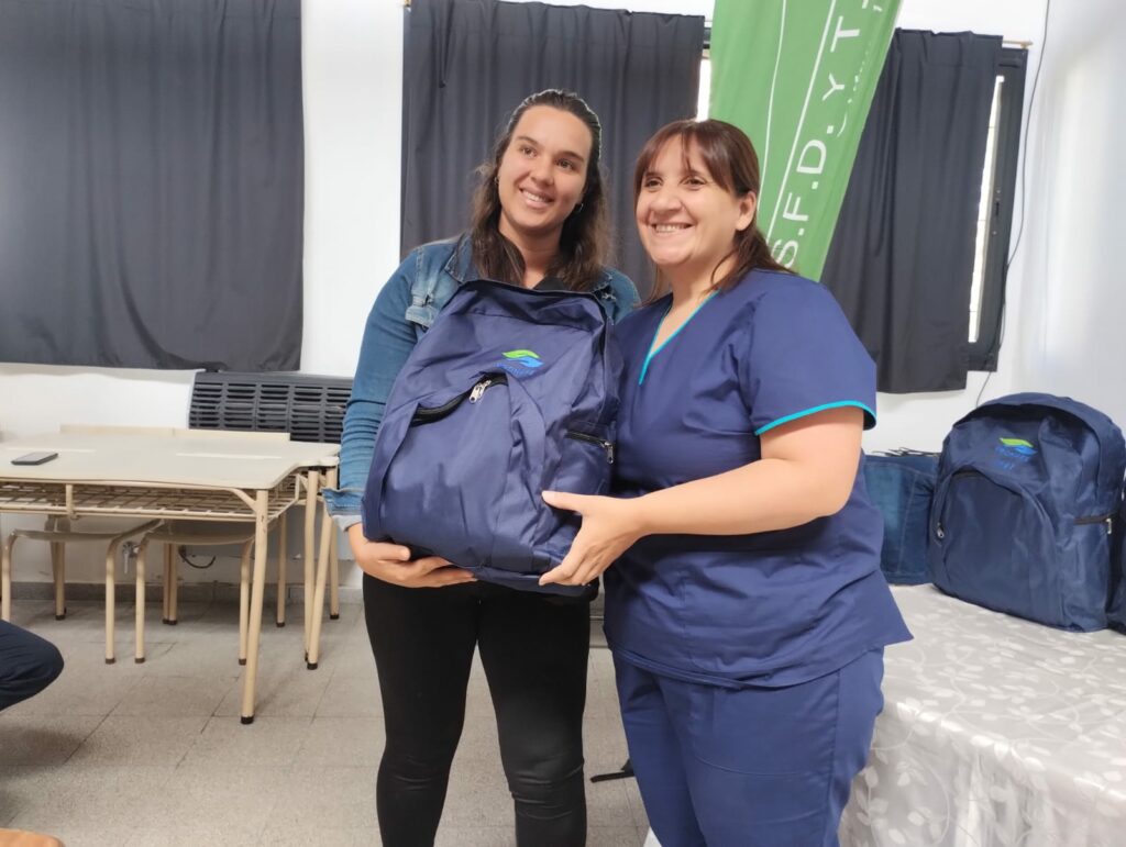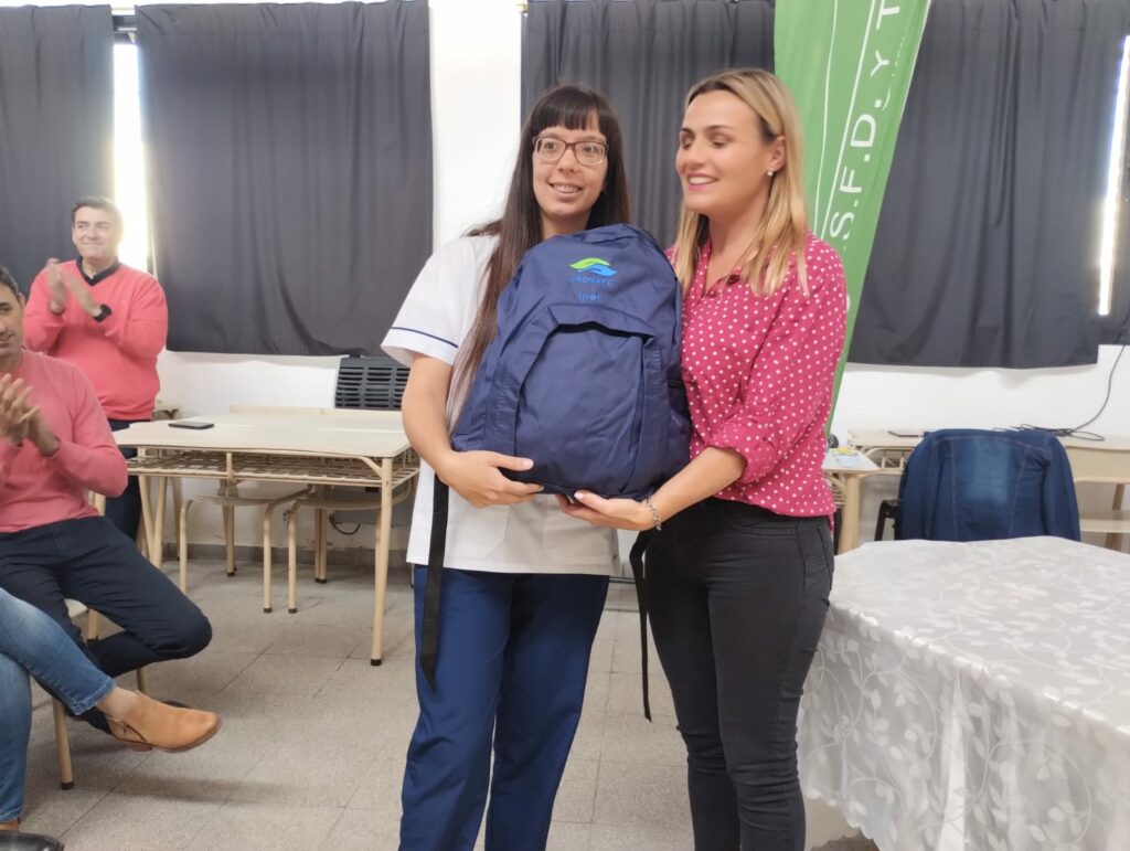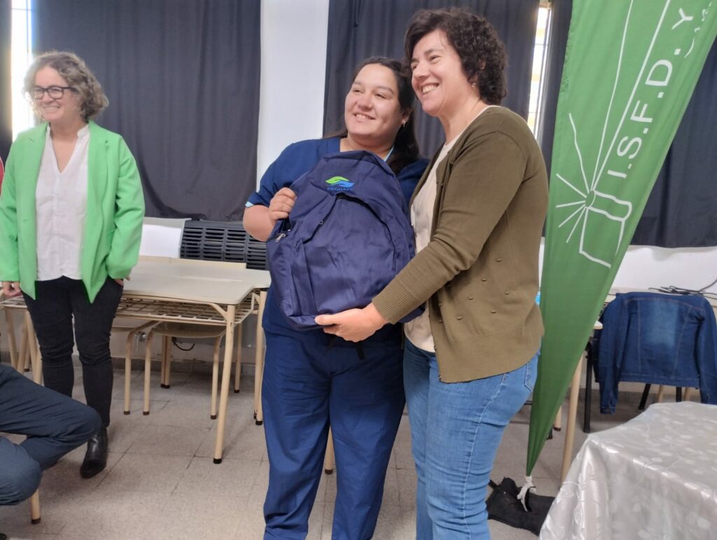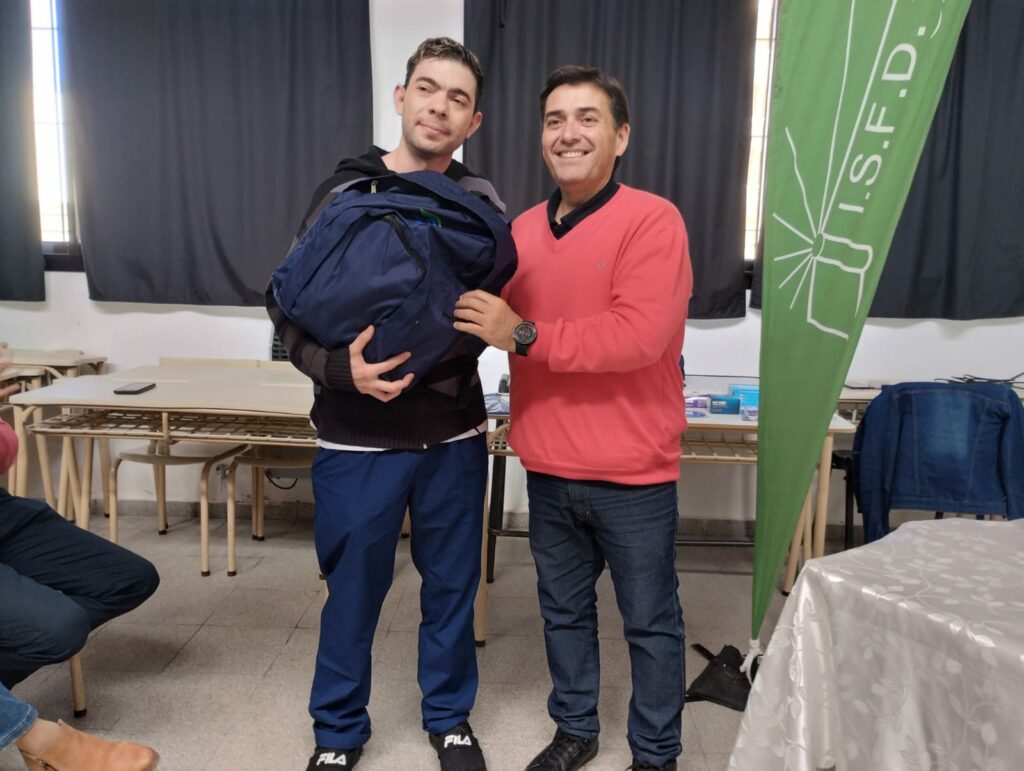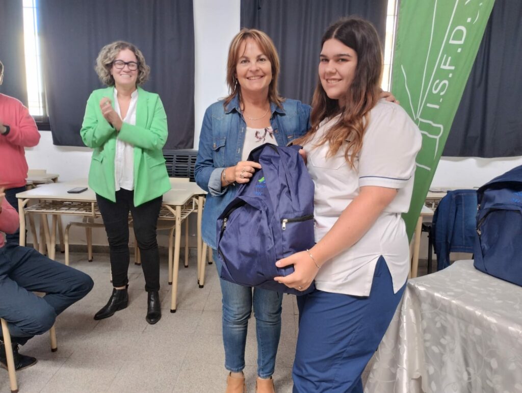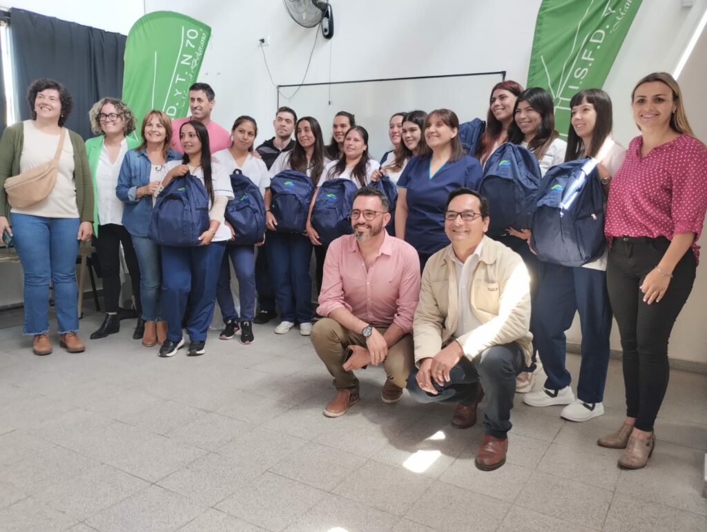 Se llevó a cabo ayer el acto de entrega de mochilas técnicas a estudiantes de la carrera de Enfermería en el Instituto Superior de Formación Docente y Técnica N° 70.
