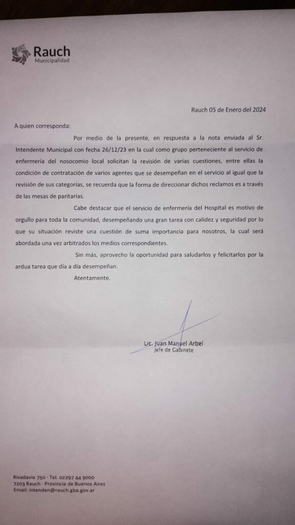 Las mismas dijeron que en la respuesta le solicitan que reclamen en paritaria, algo que ellas no deseaban “para que no se arme algo político” y que esperaban que las llamen para dialogar