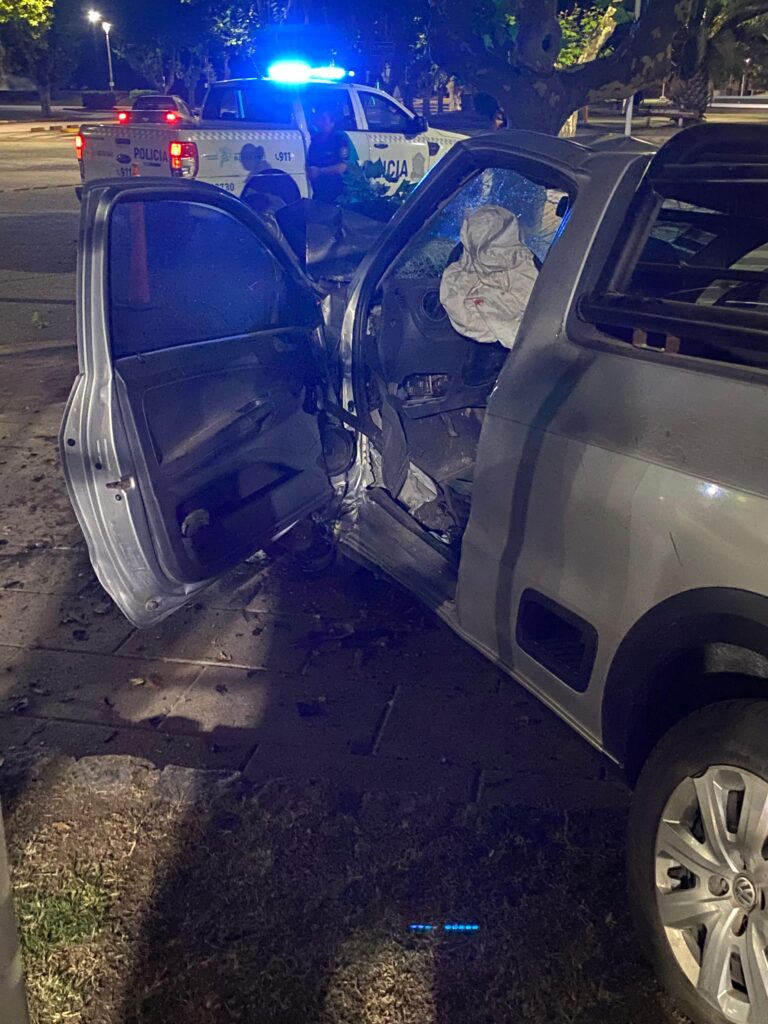 Dos personas resultaron heridas en un accidente ocurrido en la madrugada de hoy, cuando el conductor de una camioneta Volkswagen Saveiro perdió el control de su vehículo y se estrelló contra la vereda de Plaza Mitre, en el cruce de las avenidas San Martín y Belgrano. El siniestro tuvo lugar poco después de las 3 de la mañana, cuando el vehículo circulaba por la Avenida San Martín en dirección hacia calle Mitre.