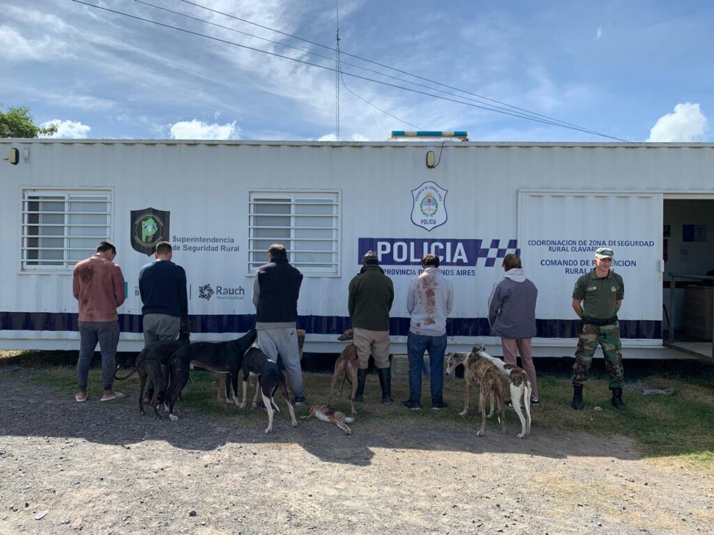Una vez identificados, los seis hombres fueron trasladados a la base del CPR local, donde se constató que estaban violando la Ley 10.081 del Código Rural de la provincia, que prohíbe expresamente la caza de liebres con perros galgos tanto en la vía pública como en terrenos privados.