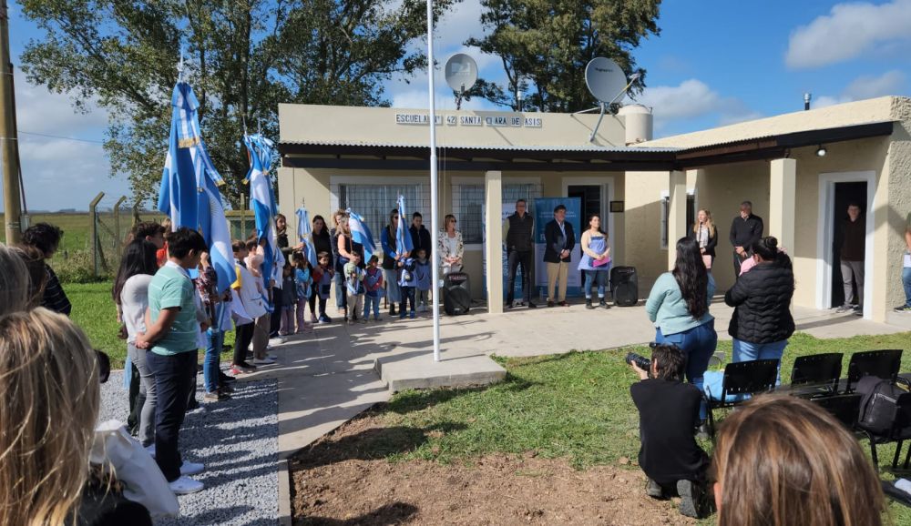 Con un emotivo acto realizado el miércoles por la mañana, se concretó la reapertura del Jardín de Infantes Rural e Islas de Matrícula Mínima (JIRIMM) N° 10 en el paraje Santa Clara, que funciona dentro de la Escuela Primaria N° 42. La jornada contó con la presencia del intendente municipal, Maximiliano Suescun, y del director general de Cultura y Educación de la Provincia, Alberto Sileoni, junto a autoridades locales, estudiantes, familias y la comunidad educativa del lugar.