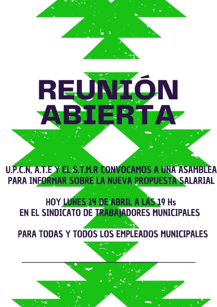 El Sindicato de trabajadores municipales organiza para hoy 14 de abril a las 19 horas, en su sede de Olvarria y Moreno, una reunión abierta a todos los y las trabajadores municipales