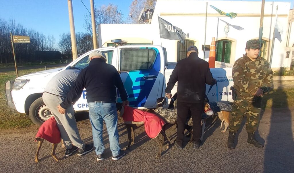 Una vez en el lugar, los móviles del CPR identificaron a tres hombres mayores de edad, dos oriundos de La Plata y uno de Berisso. Si bien no se habían apoderado de ninguna pieza de caza, fueron sorprendidos con los perros dentro de un establecimiento privado, lo cual motivó el inicio de actuaciones por infracción a la Ley Provincial de Caza N° 10.081.