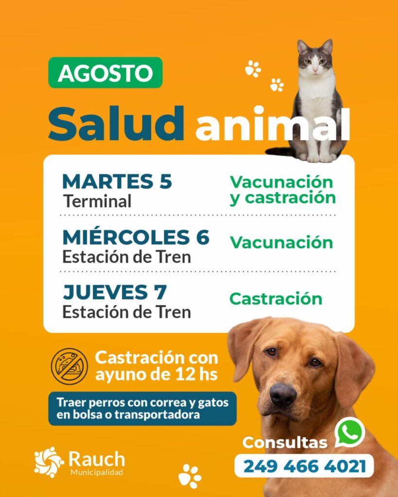 En este marco, se anunció que durante el mes de agosto se llevará adelante la Semana de la Salud Animal, con actividades especiales. El martes se realizará una jornada de castración y vacunación en la terminal, mientras que el miércoles, coincidiendo con el Día del Veterinario, se dedicará exclusivamente a vacunación. El jueves, nuevamente se realizarán castraciones. Todas las actividades comenzarán a partir de las 8:30 de la mañana y se extenderán hasta el mediodía.