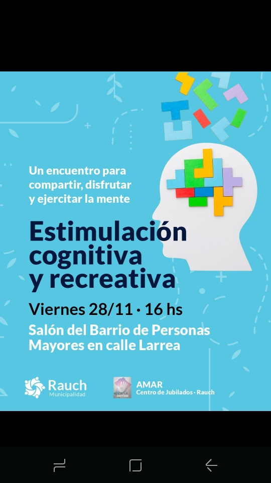 Este viernes 28 de noviembre, a las 16 horas, se realizará una jornada especial de estimulación cognitiva y recreativa en el Salón del Barrio de Personas Mayores, ubicado en calle Larrea. La propuesta es impulsada por el programa AMAR y contará con la presencia de su tallerista, Yanina Rodríguez, quien desde 2019 lleva adelante este espacio destinado a fortalecer las capacidades mentales y promover la sociabilización entre adultos mayores.