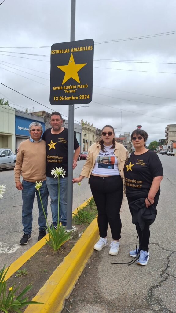 Durante el acto, Mariana Craverou, referente local de Estrellas Amarillas, agradeció la presencia de quienes se acercaron a acompañar el homenaje y recordó a Javier Fassio a un año de su fallecimiento. Junto a Agustina Fassio Islas, hija de la víctima, hizo uso de la palabra y expresó: “Estamos otra vez en esta fatal esquina donde otra vida quedó truncada. Agustina, con el dolor a flor de piel, en un día muy particular, de nuevo para seguir recordando a Javier”.