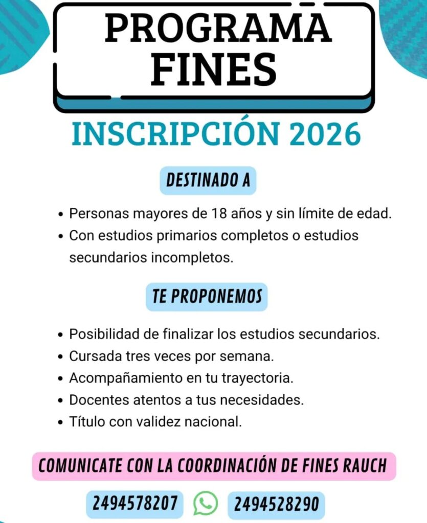 YA ESTA ABIERTA LA INSCRIPCIÓN AL PLAN FINES RAUCH 2026.