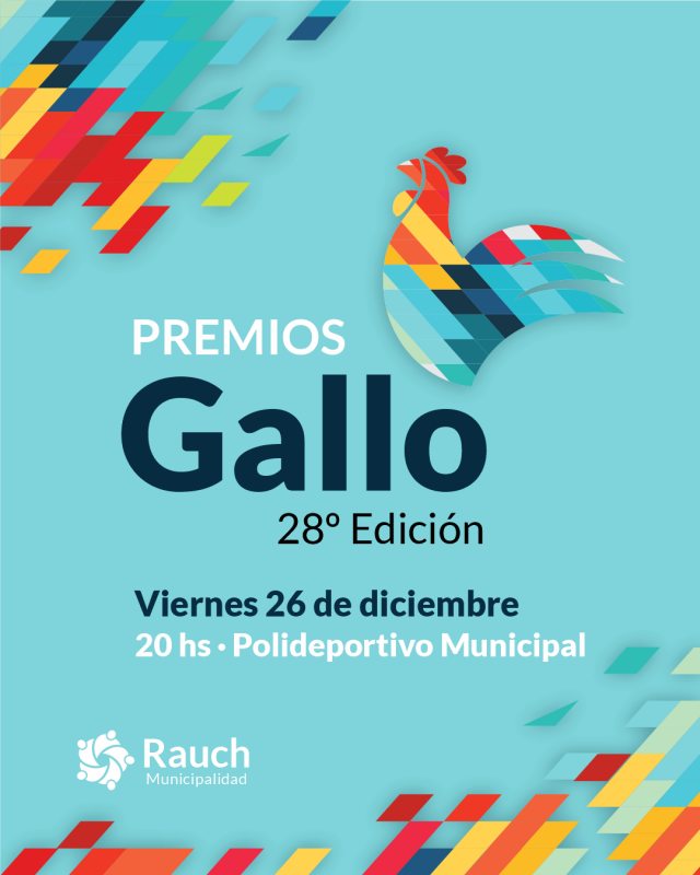 Rauch vive una vez más su gran celebración deportiva con una nueva edición de los Premios Gallo. La tradicional Fiesta del Deporte, que este año alcanza su 28.ª edición, se realizará el viernes 26 de diciembre en el Polideportivo Municipal, a partir de las 20 horas.
