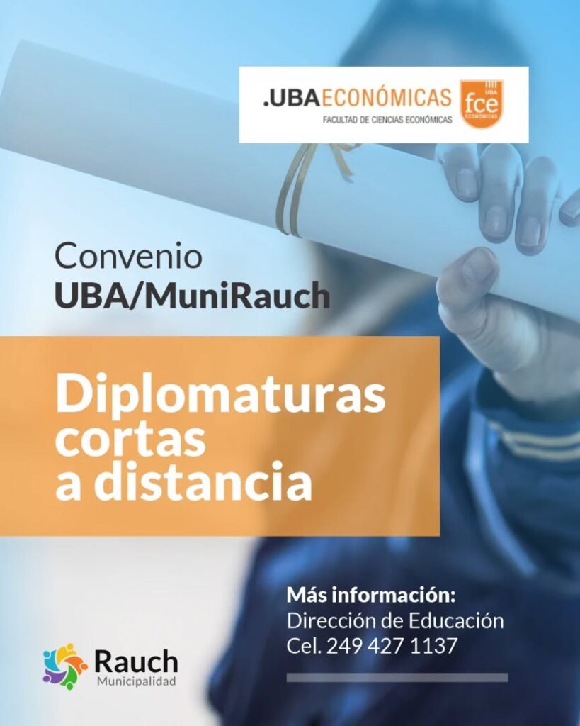 La Municipalidad de Rauch, a través del Área de Educación, firmó un importante convenio con la Facultad de Ciencias Económicas de la Universidad de Buenos Aires (UBA) que permitirá a vecinos y vecinas del distrito acceder a más de 40 diplomaturas virtuales, de corta duración y con un arancel bonificado.