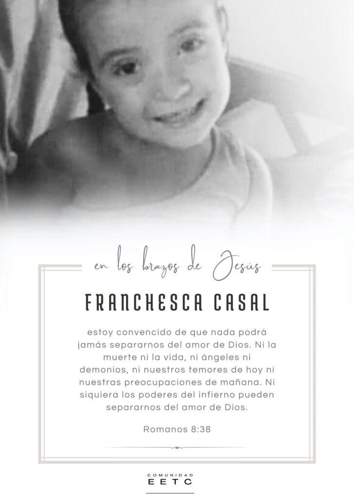 Distintas instituciones y organizaciones expresaron su pesar. Desde el Movimiento Cristiano y Misionero manifestaron: “Con profundo dolor despedimos a Franchesca Casal. Nos unimos como comunidad para abrazar con amor y respeto a su familia en este momento tan difícil, acompañándolos en silencio, oración y cercanía sincera. Lloramos con los que lloran, confiando en que Dios está cerca de los quebrantados de corazón”.