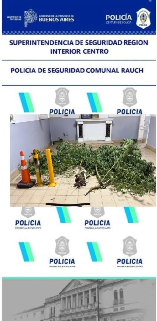 Asimismo, en el patio trasero de la vivienda se halló una planta de marihuana con cuatro gajos, la cual arrojó un pesaje total de aproximadamente 20 kilogramos. Ante esta situación, se notificó al morador del domicilio de la formación de una causa por “Infracción a la Ley 23.737 – Tenencia simple para consumo personal”, con intervención de la UFI Nº 22 del Departamento Judicial Azul – sede Tandil, a cargo del fiscal Dr. Adrián Peiretti. El imputado no quedó sujeto a medidas restrictivas de la libertad.